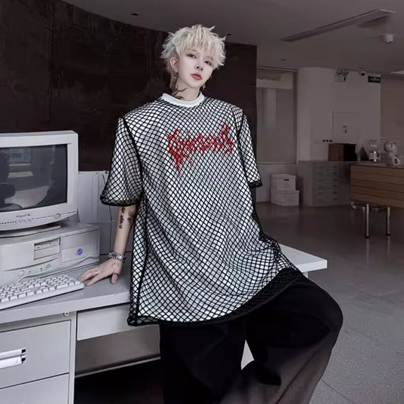 Mesh Fake Two-Piece Shoulder Pad T-shirt