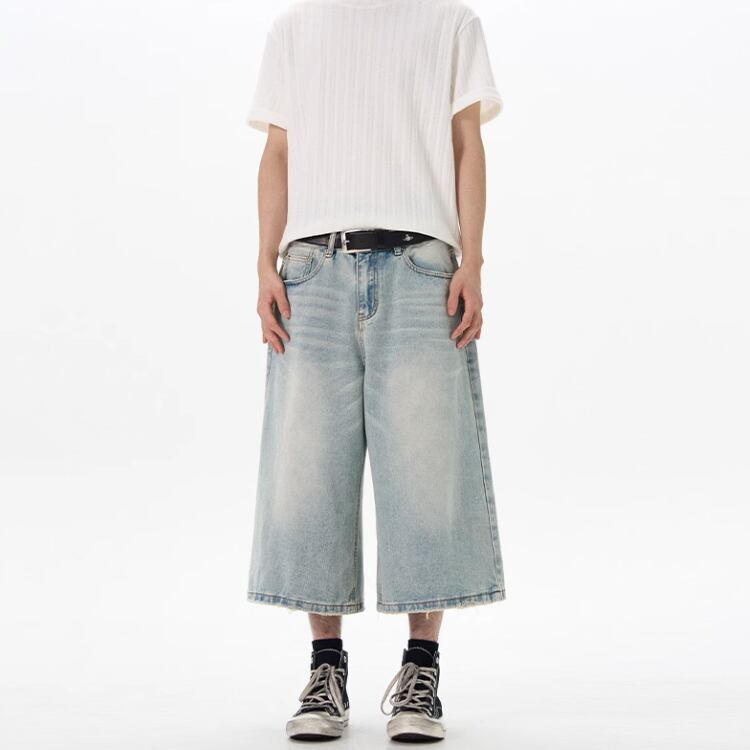 【KISKO】のウォッシュライトブルーの3/4丈パンツは、カジュアルさと洗練されたスタイルを兼ね備えたアイテムです。リラックスしたフィット感で、デイリーユースから特別なシーンまで幅広く活躍します。