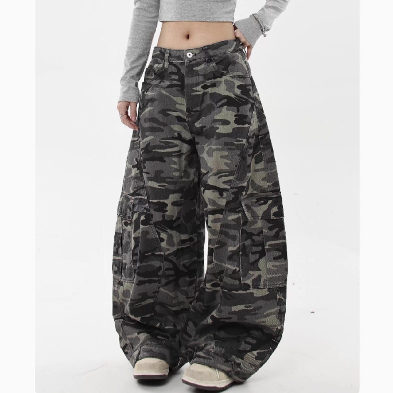 独特のカモフラージュ柄が、スタイリッシュで個性的な印象を与えます。シンプルなトップスと合わせるだけで、オシャレ度がアップします!