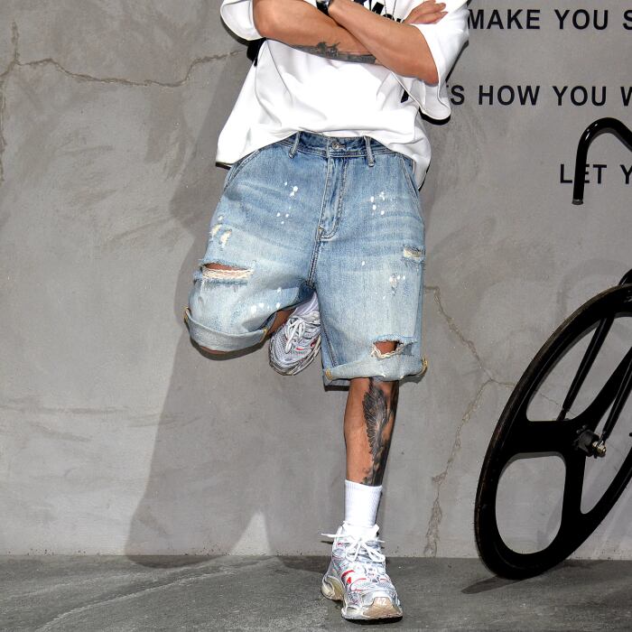 Ripped paint splattered shorts