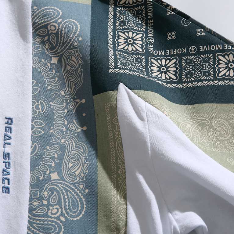 メンズ パッチワーク柄デザイン切替Tシャツ REAL SPACE