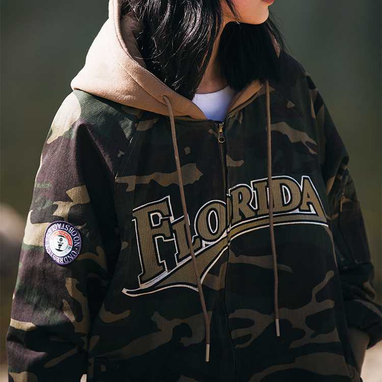メンズ 迷彩柄ロゴ刺繍フード付きカジュアルジャケット