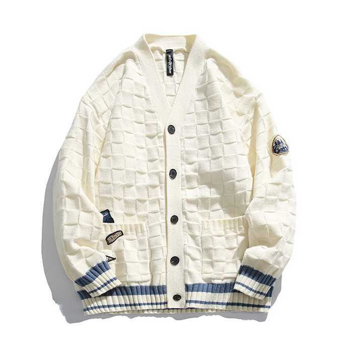 メンズ ワッペン付きチェッカーパターンカーディガン