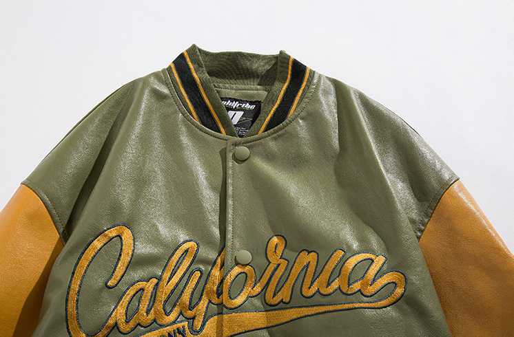 メンズ フェイクレザーフロントロゴ刺繍スタジャン