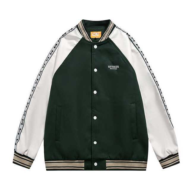 メンズ コントラストカラー袖ライン入りスタジャン CAT