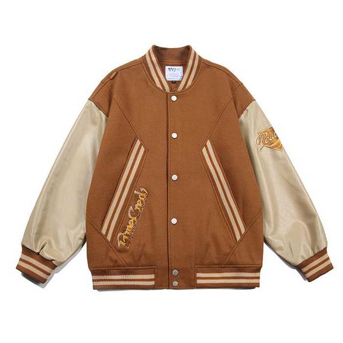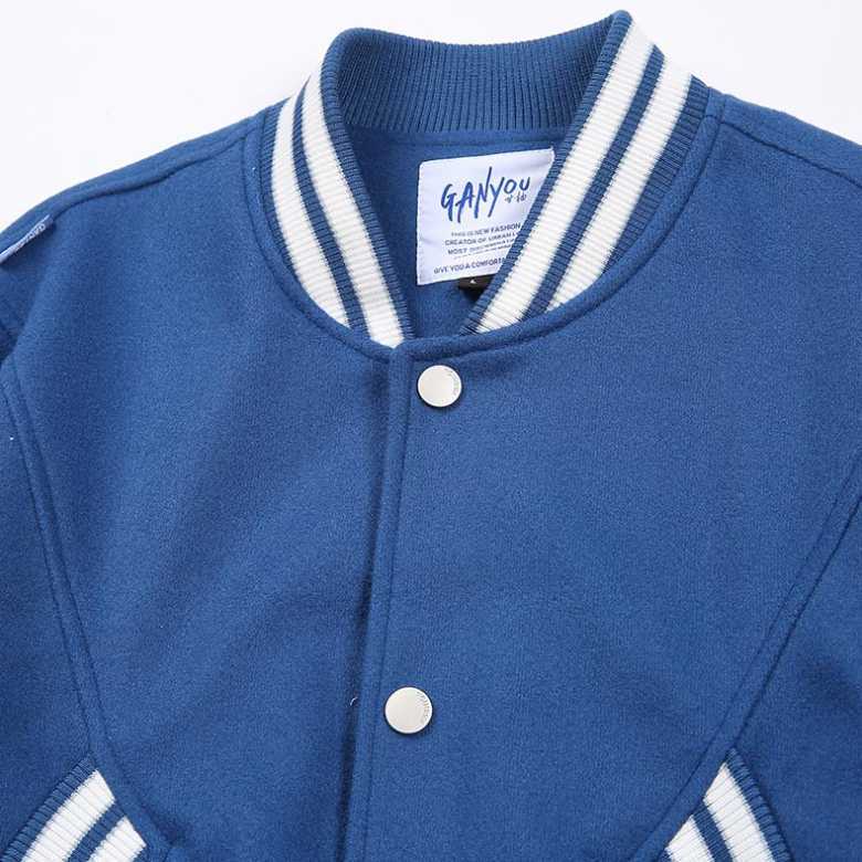メンズ コントラストカラーフロントライン袖ワッペン付きスタジャン GANYOU